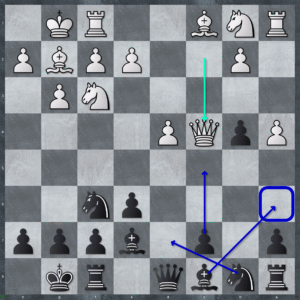 The most forcing continuation. After 9…Qxd4 10.Bxa8 Qxe5 11.Bf4 Qh5!, the file shows multiple variations demonstrating Black’s compensation for the exchange with active pieces and threats.